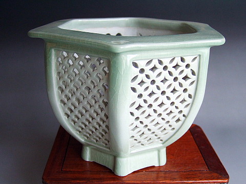 透かし鉢『六角青磁 白磁透かし鉢』