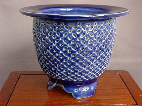 ![]() セッコク鉢 『瑠璃 青海波 透かし』 このセッコク鉢は、全部青海波で透かしで注文したものです。 作者(三橋俊治 氏) |
