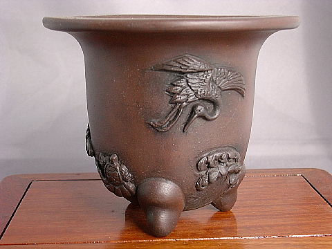蘭鉢 『焼き締め 浮き彫り 鶴と亀』