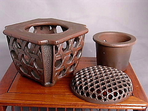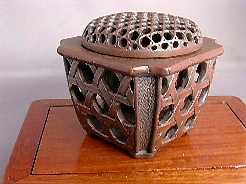 香炉 『焼締め 竹編み込み 蓋透かし』