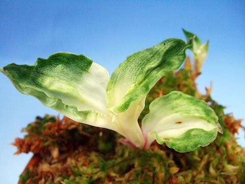 ![]() 1.大黒蘭(ユウコクラン)『白黄散斑縞』 大黒蘭(ユウコクラン)『白黄散斑縞』 この斑は、白黄の地合に散斑縞が入るタイプです。珍品 |