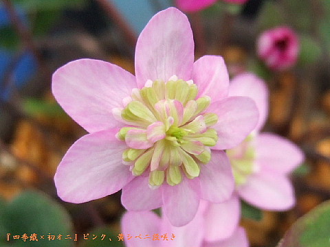 2.『四季織×初オニ』ピンク、黄シベ二段咲き